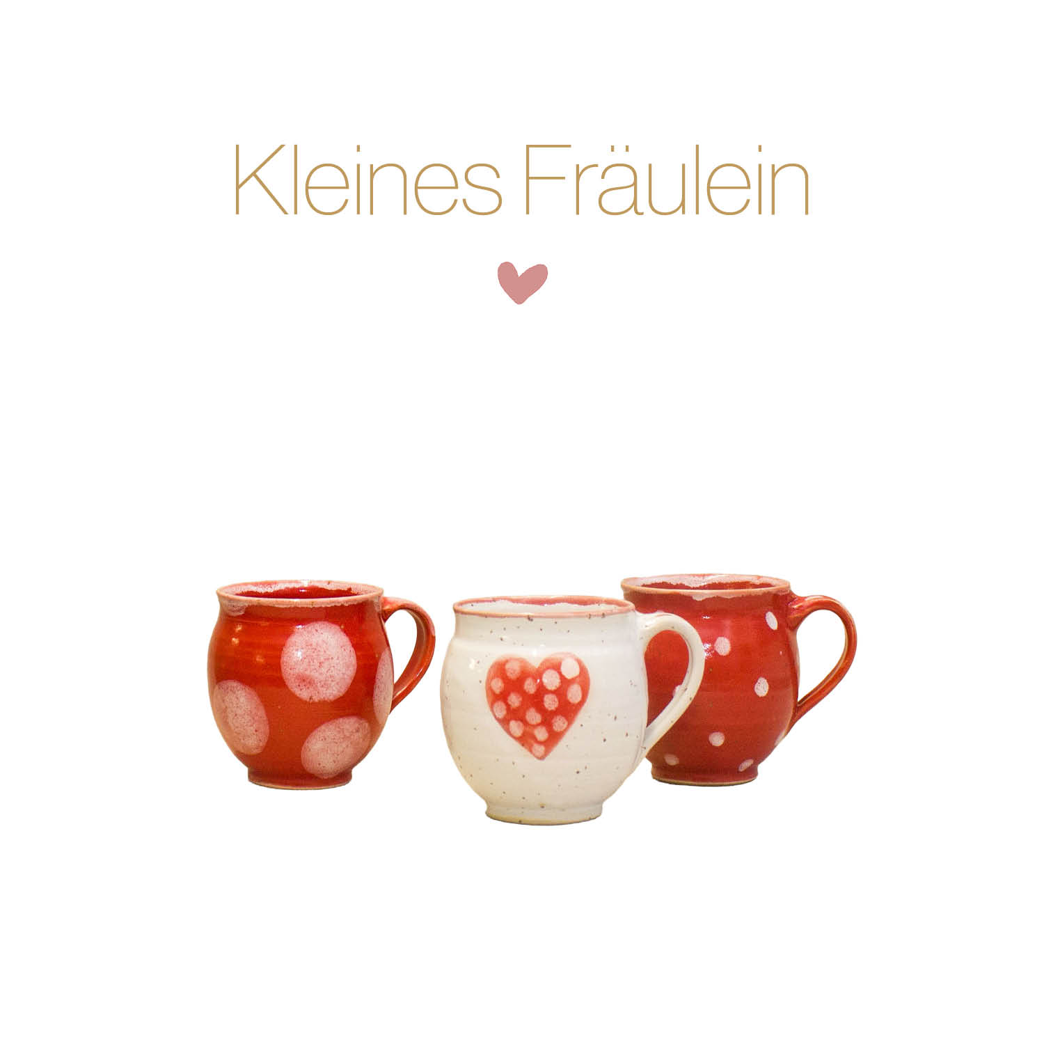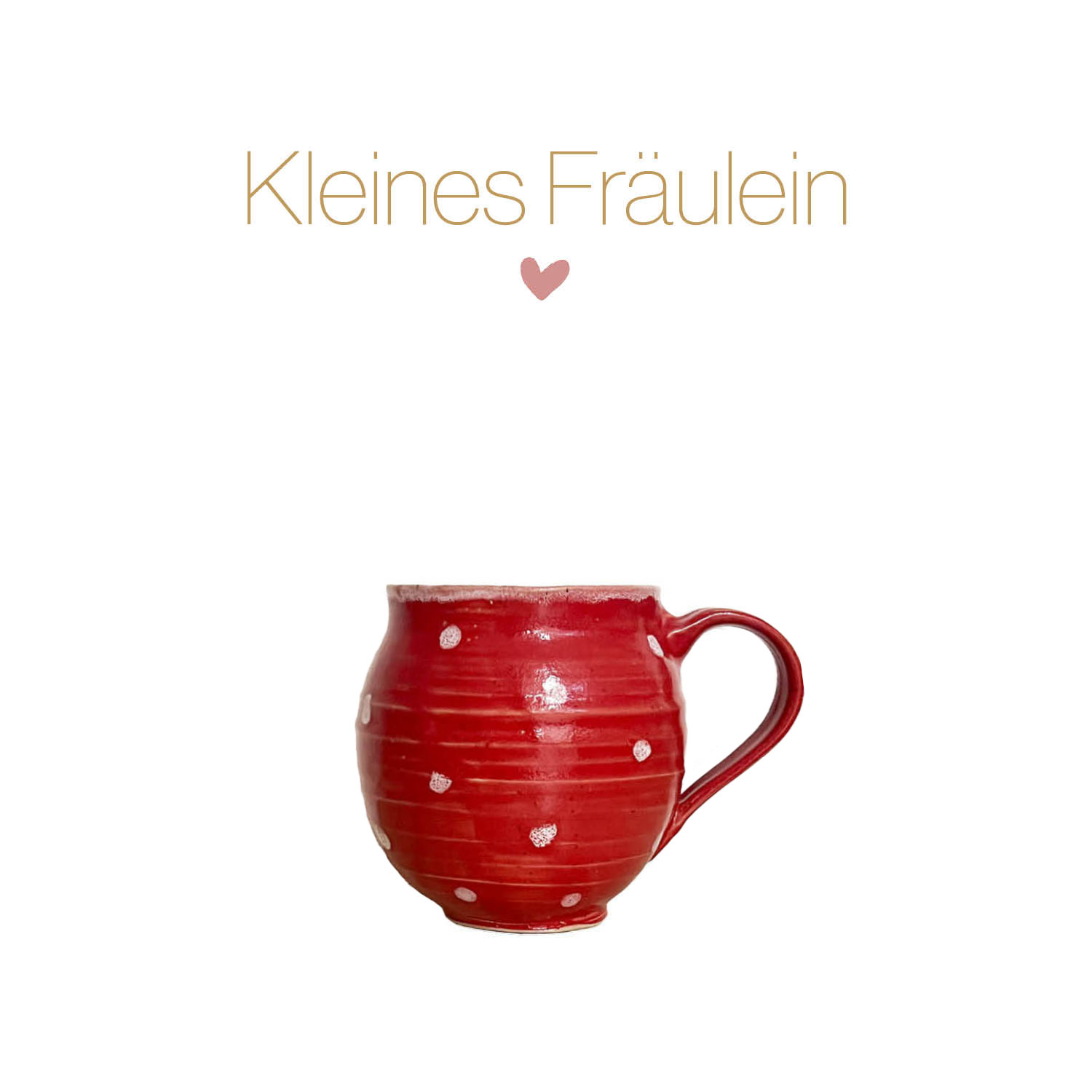 Die von Hand gedrehte Keramiktasse “Kleines Fräulein” hat einen gewölbten Bauch und ist oben leicht geschlossen, dadurch hält sie deinen Tee oder Kaffee lange heiß. Sie gibt es in rot und weiss mit kleinen oder großen Punkten oder verspielt mit Herz.